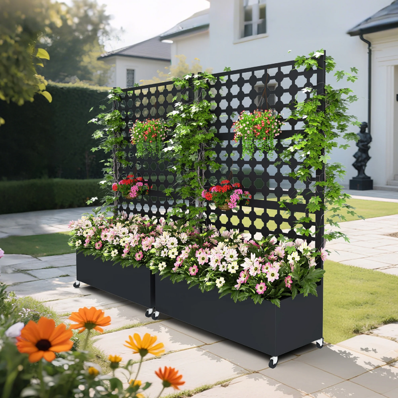 Jardinière en métal avec treillis et écran d'intimité