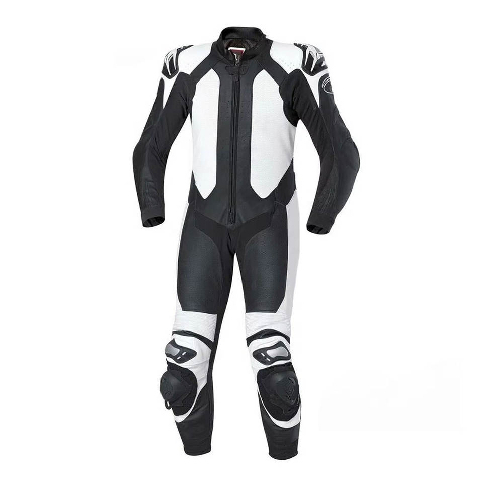 Combinaison de course en cuir pour moto personnalisée, design sur mesure noir et blanc, combinaison de motard en cuir pour course rapide avec finitions premium