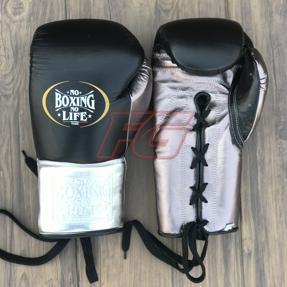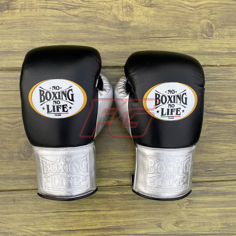 Gants de boxe personnalisables « No Boxing No Life » pour entraînement et sparring, à fermeture auto-agrippante et à lacets, en cuir de vachette, séchage rapide, OEM/ODM