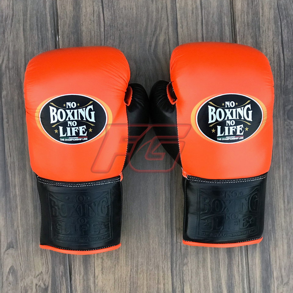 Gants de boxe MMA personnalisables « No Boxing No Life » pour entraînement et sparring, en cuir de vachette, avec fermeture auto-agrippante et lacets, anti-humidité, OEM/ODM