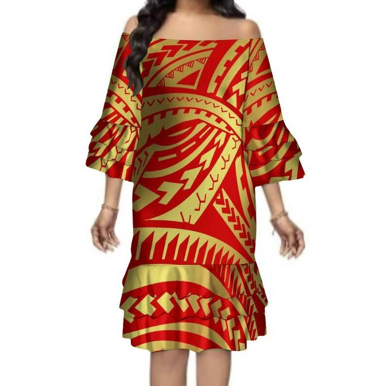 Robe polynésienne tribale sur mesure, grande taille, pour femmes, à une épaule, demi-manches, multi-couches, plissée, courte, style gâteau
