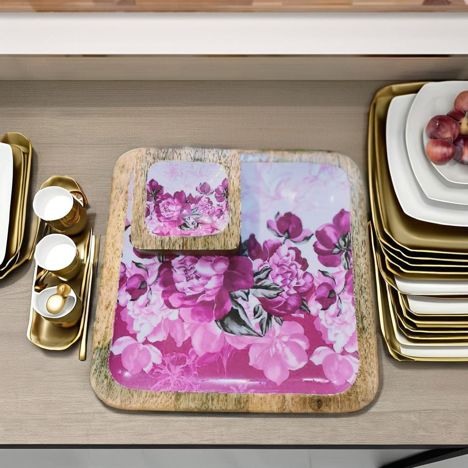 Plateau à chips et à trempette en bois carré de 10 pouces personnalisé imprimé Durable et écologique