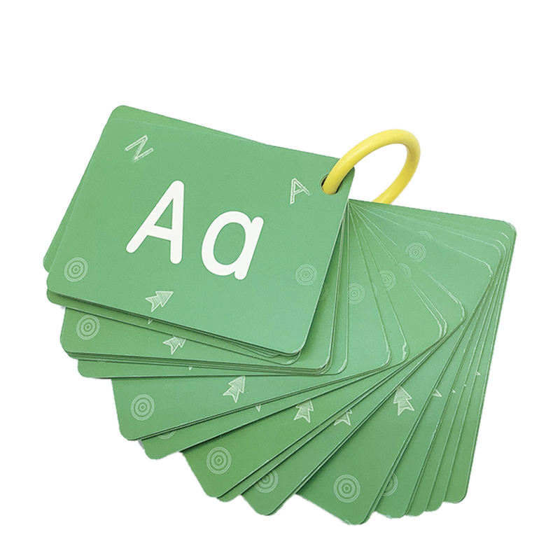 Cartes flash personnalisées imprimées et parlantes pour enfants, jouets d'apprentissage, vente en gros de cartes d'apprentissage à mémoire de l'alphabet vert