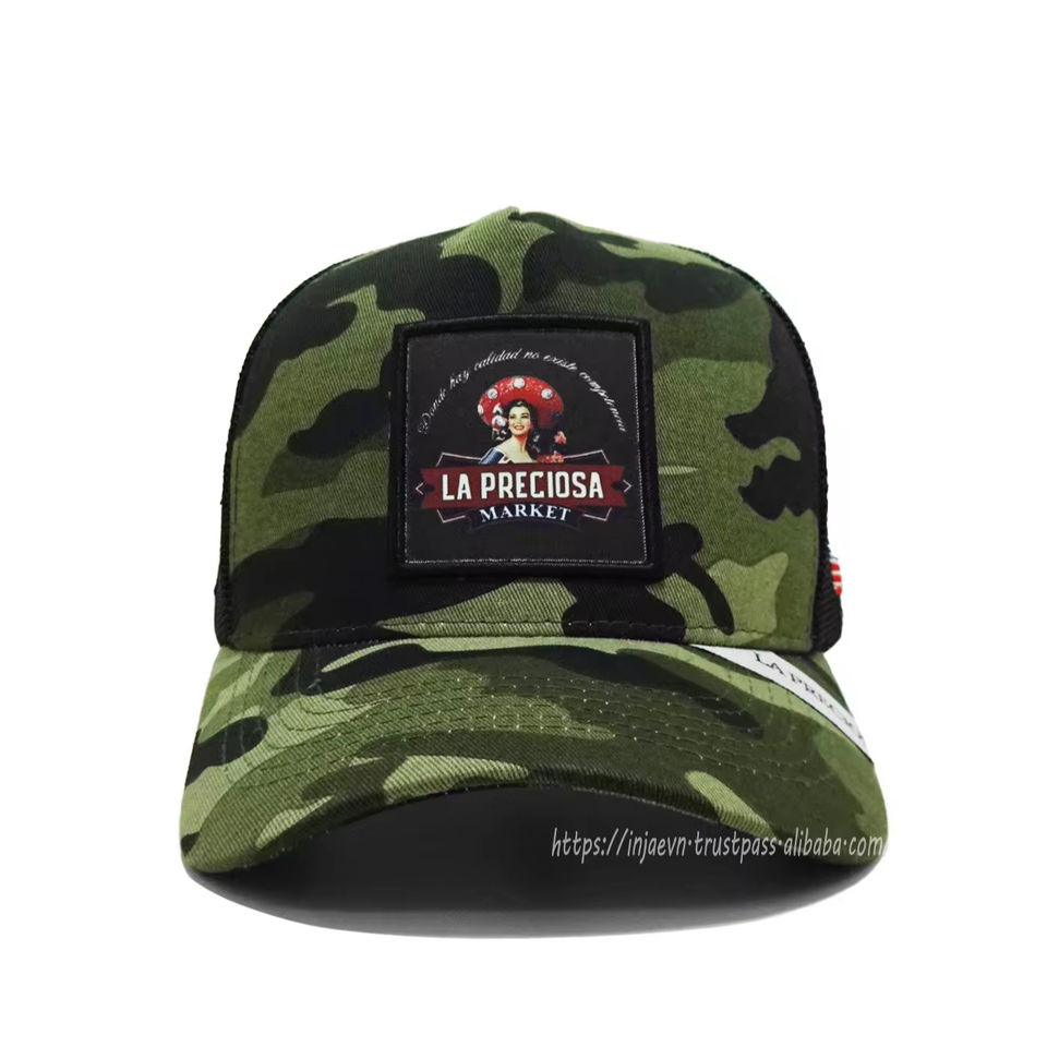 Customize Printing Logo on Camo Trucker Hats, Custom Embroidery Logo Side Panel Mens Sports Cap Trucker Cap Wholesale