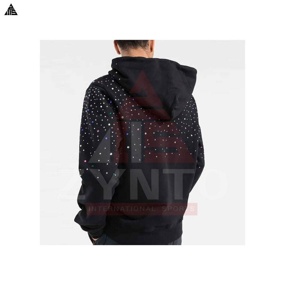 Sweat à capuche personnalisé avec logo en strass pour homme, pull basique tendance en coton mélangé de haute qualité, dernières nouveautés en matière de sweats à capuche en strass pour homme