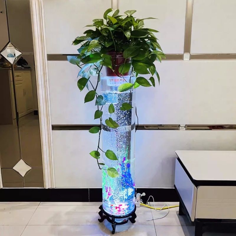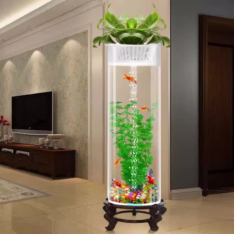 Aquarium rond de luxe personnalisé en verre avec éclairage LED ultra silencieux pour salon