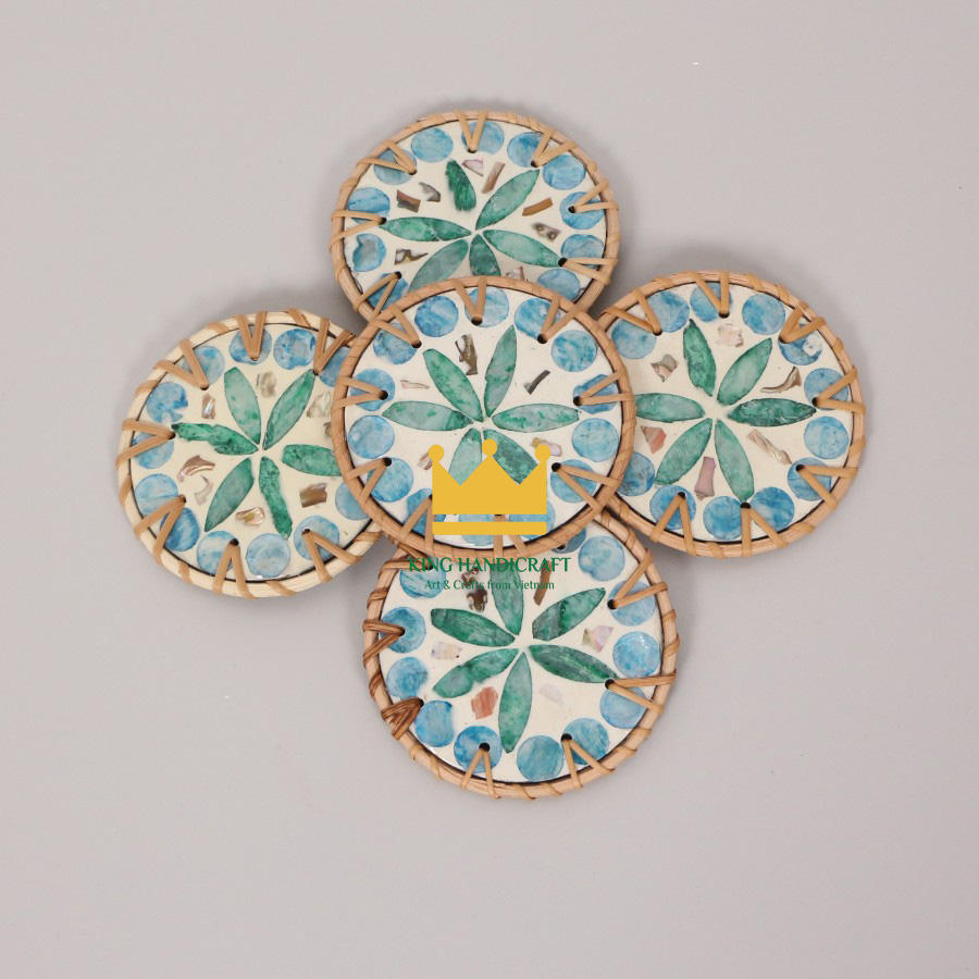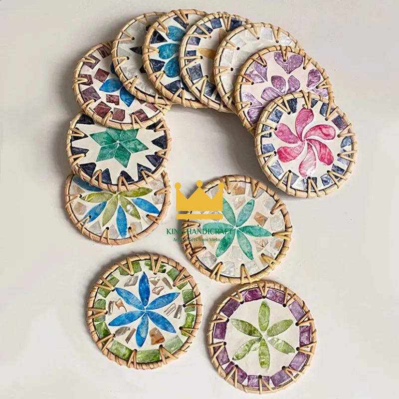 Dessous de verre rustiques en rotin tissés à la main personnalisés avec des tapis de boisson naturels au design artistique de fleurs pour la vie écologique et la décoration intérieure