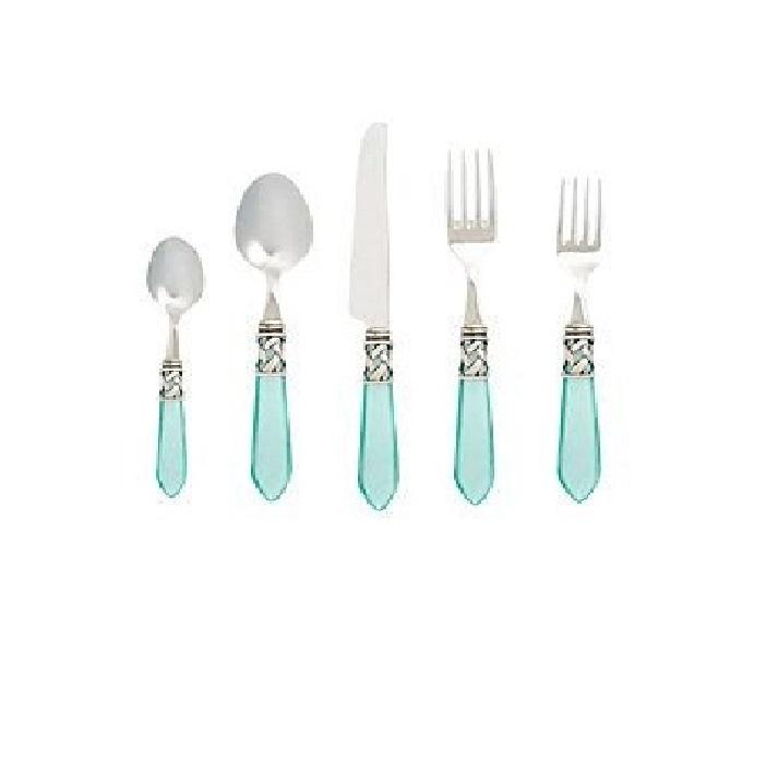 Personnaliser Argent Nickle En Acier Inoxydable Unique Bleu Ciel Résine Handel En Acier Inoxydable De Luxe Hôtel De Mariage Couverts Ensembles