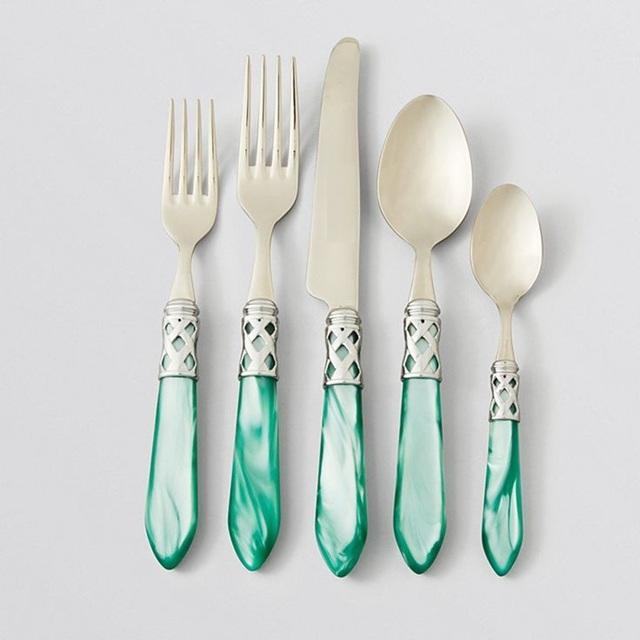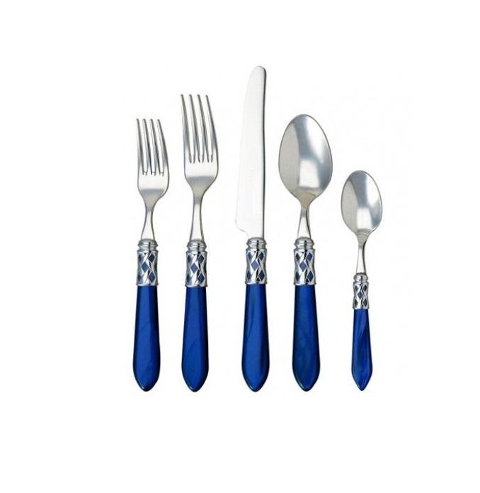 Personnaliser Argent Nickle En Acier Inoxydable Unique Bleu Ciel Résine Handel En Acier Inoxydable De Luxe Hôtel De Mariage Couverts Ensembles