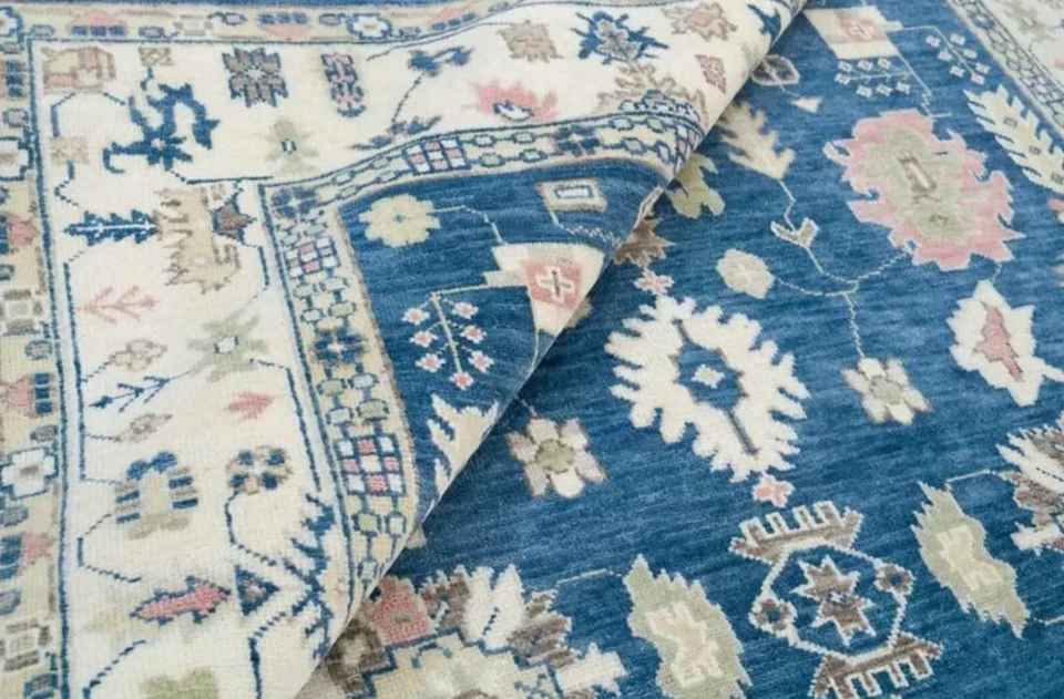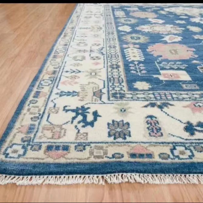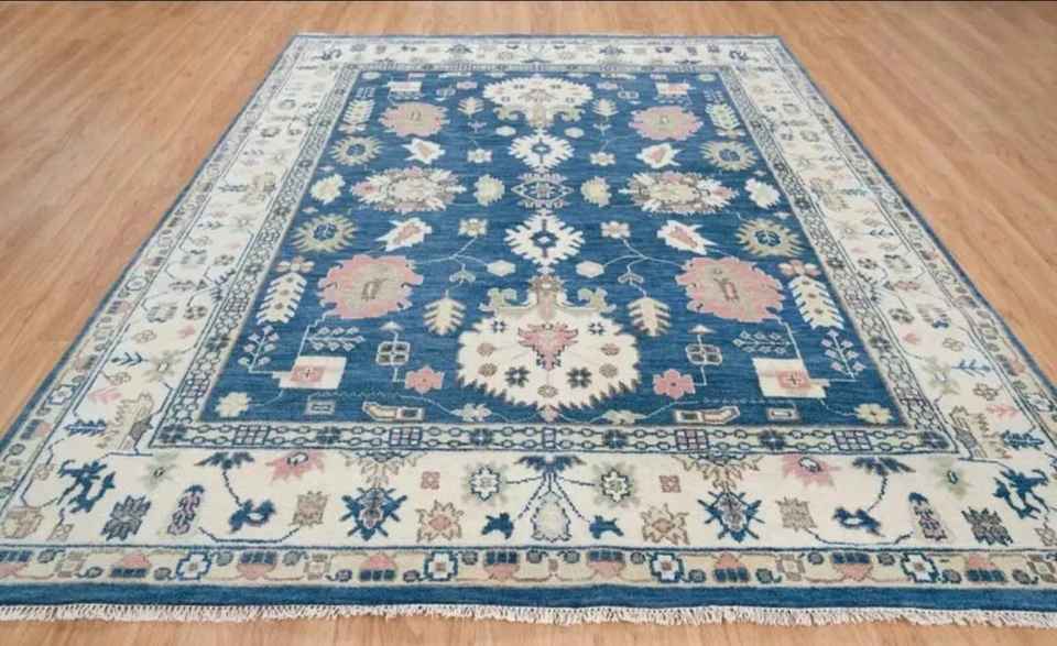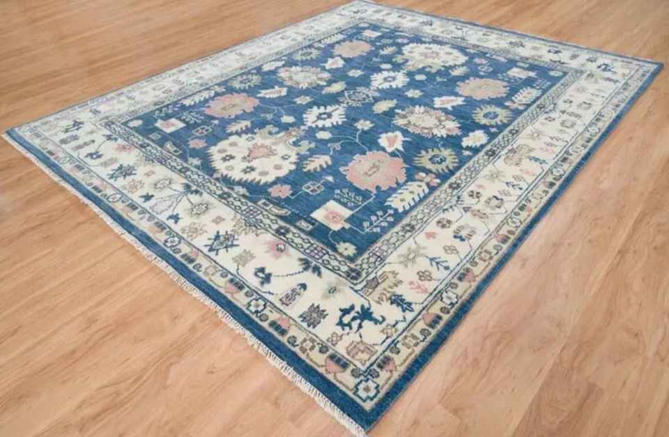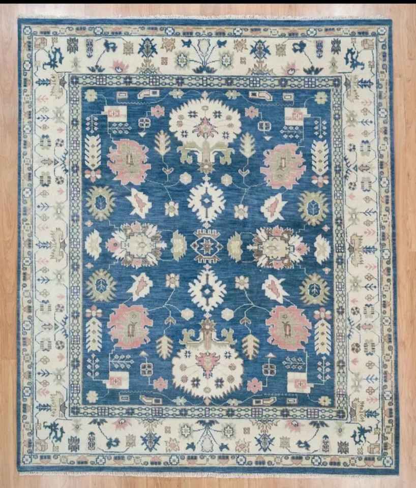Tapis turc Oushak personnalisable 8x5 fait main en laine/soie, antidérapant, adapté aux animaux domestiques, à poils ras, motif abstrait, pour salon et autres