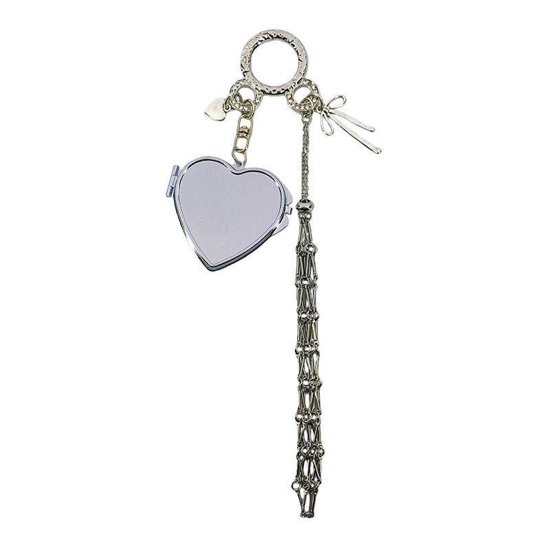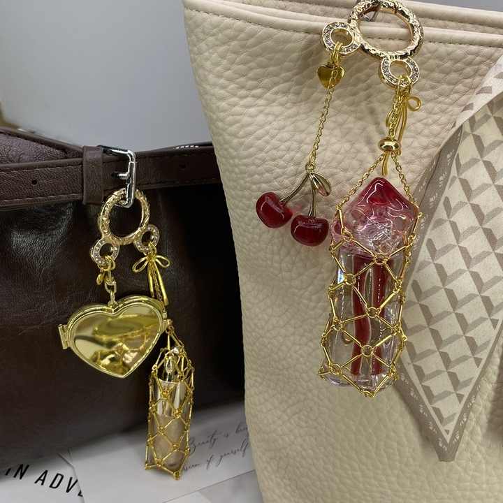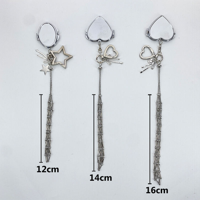 Porte-clés personnalisable en acier inoxydable avec pochette en filet pour rouge à lèvres, miroir, cerise, étoile, cœur, pour femme, breloque pour baume à lèvres