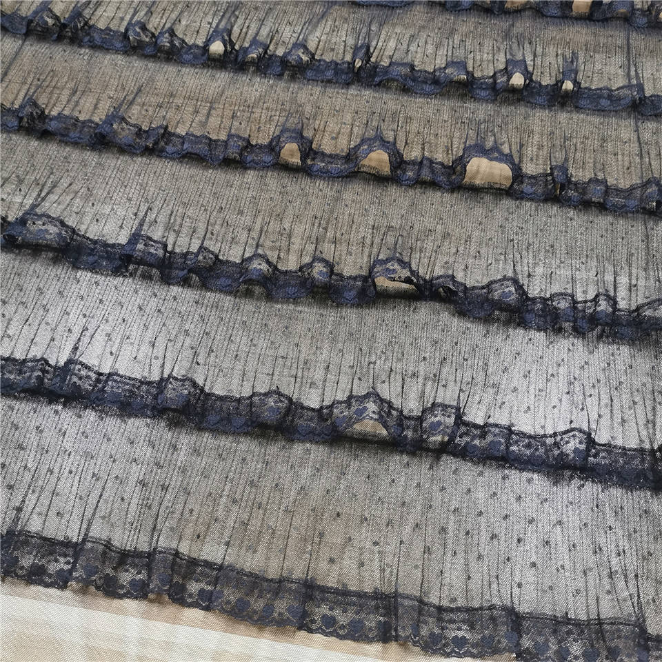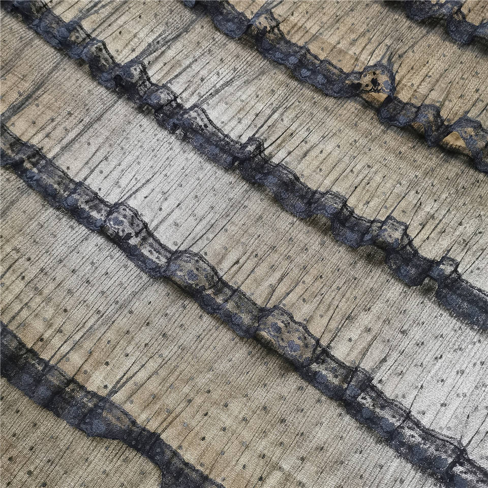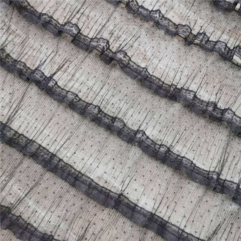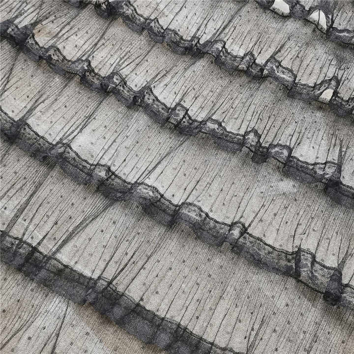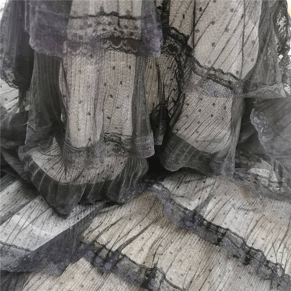 Tissu personnalisé en tulle à volants à pois noirs en dentelle, tissu déco en maille plissée pour robe tutu