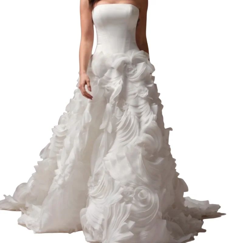 Robe de mariée personnalisable, dernière collection 2025, avec jupe ample, bustier blanc et décorations florales 3D, corset ajusté