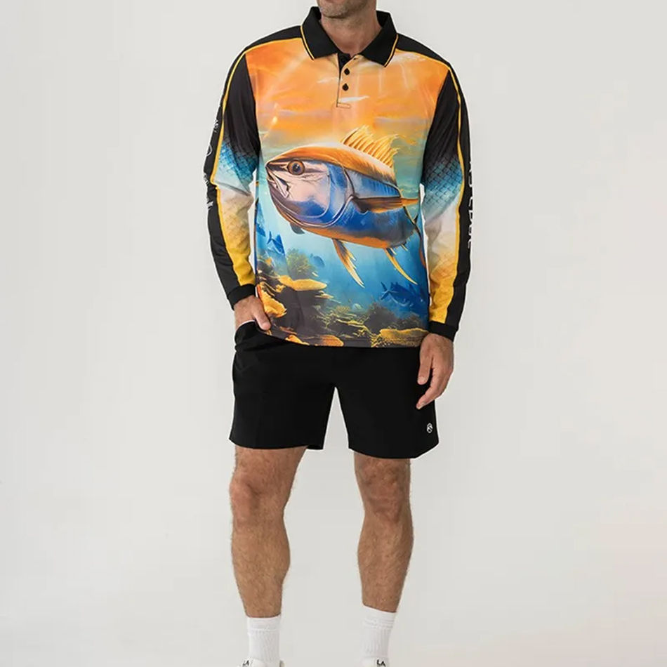 Polo de pêche respirant en polyester personnalisé avec protection UV pour hommes, performance OEM