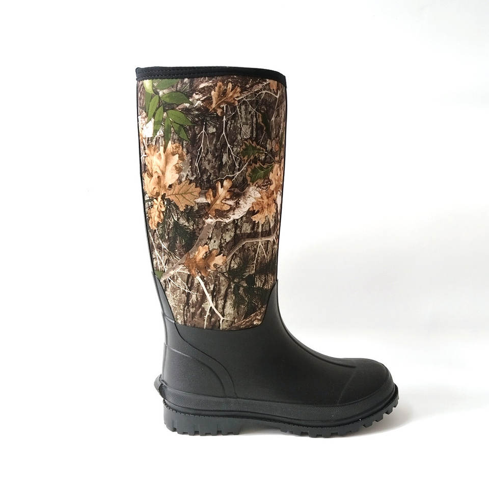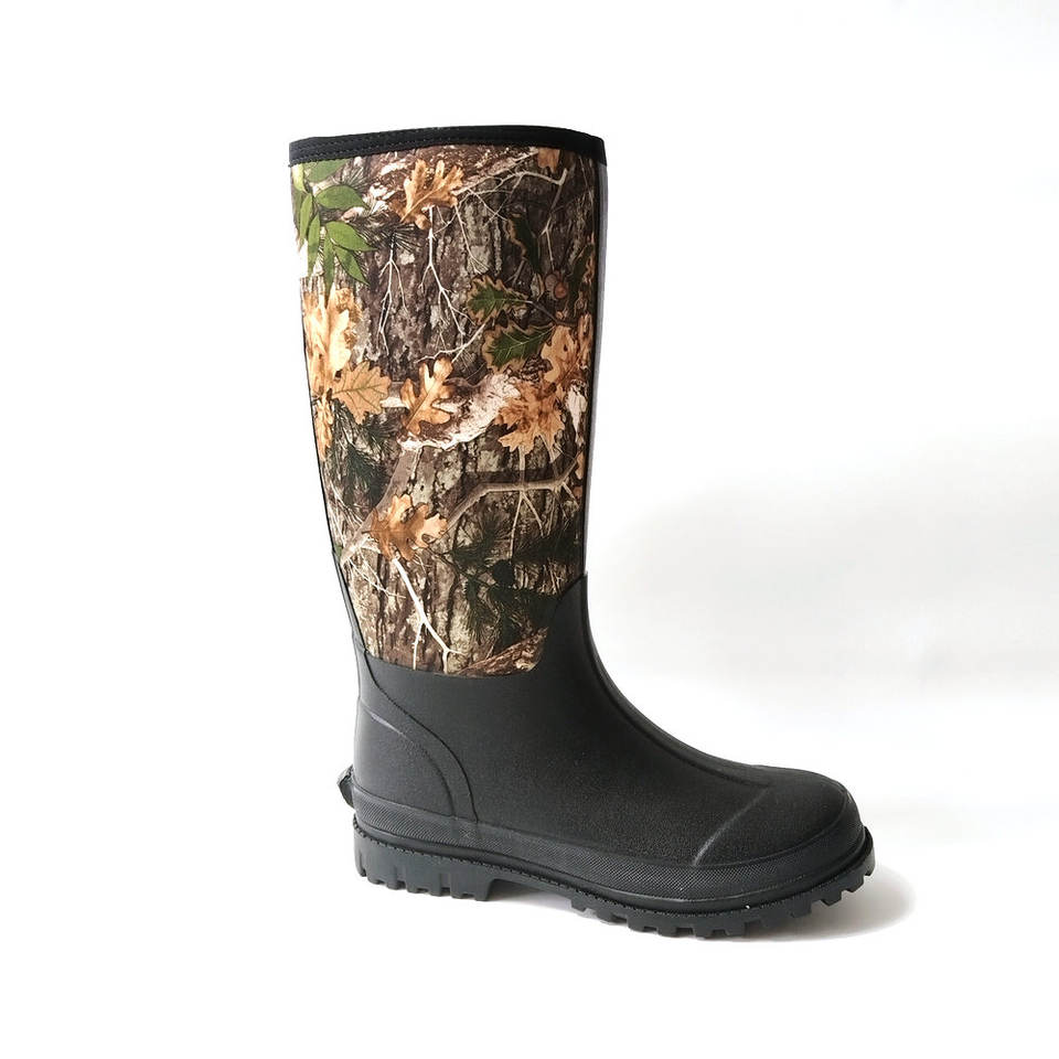 Personnaliser chaud robuste néoprène extérieur botte de pluie camouflage impression caoutchouc botte de chasse muck corvées boue chaussons genou haute ferme bottes