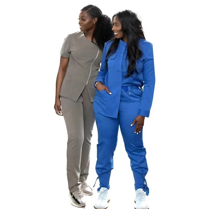Customize Women Hospital Nurse Scrub Uniform Sets Short Sleeve V Top Straight Pant Multi-pocket Scrub Set Women Hospital
