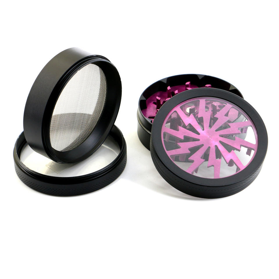 Personnalisez votre logo 63mm Metal Lightning Grinder Moulin à fumée Quad Layer Grinder Manual Smoker Set
