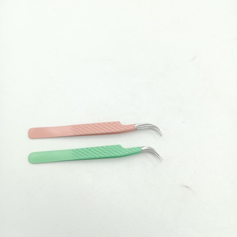 Customize logo Eyelash Extension Tweezers Private Label 90 Degree Green Color Silver Tip Eyelash Tweezers