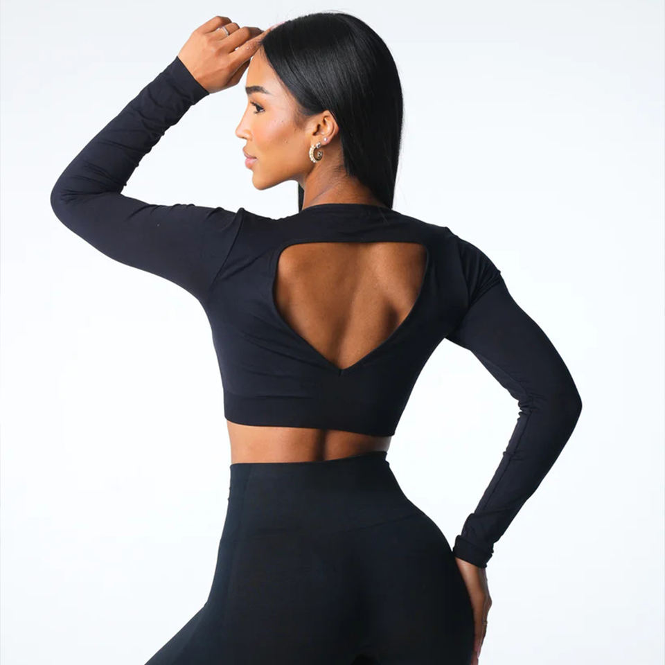 Logo personnalisé Nouveau design Haut court d'entraînement de yoga à manches longues pour femmes Chemise de sport Journey Haut de soutien-gorge sans couture à manches longues