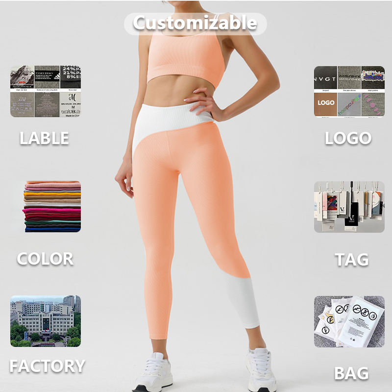 Personnaliser le logo remorquage couleur de marque bonne qualité mode taille haute beauté dos entraînement respirant deux pièces Yoga ensembles femmes