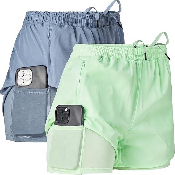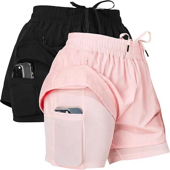 Shorts personnalisés Ultra Performance Shorts de sport pour femmes 2 pièces avec doublure de compression Poche pour téléphone Tissu en nylon et élasthanne