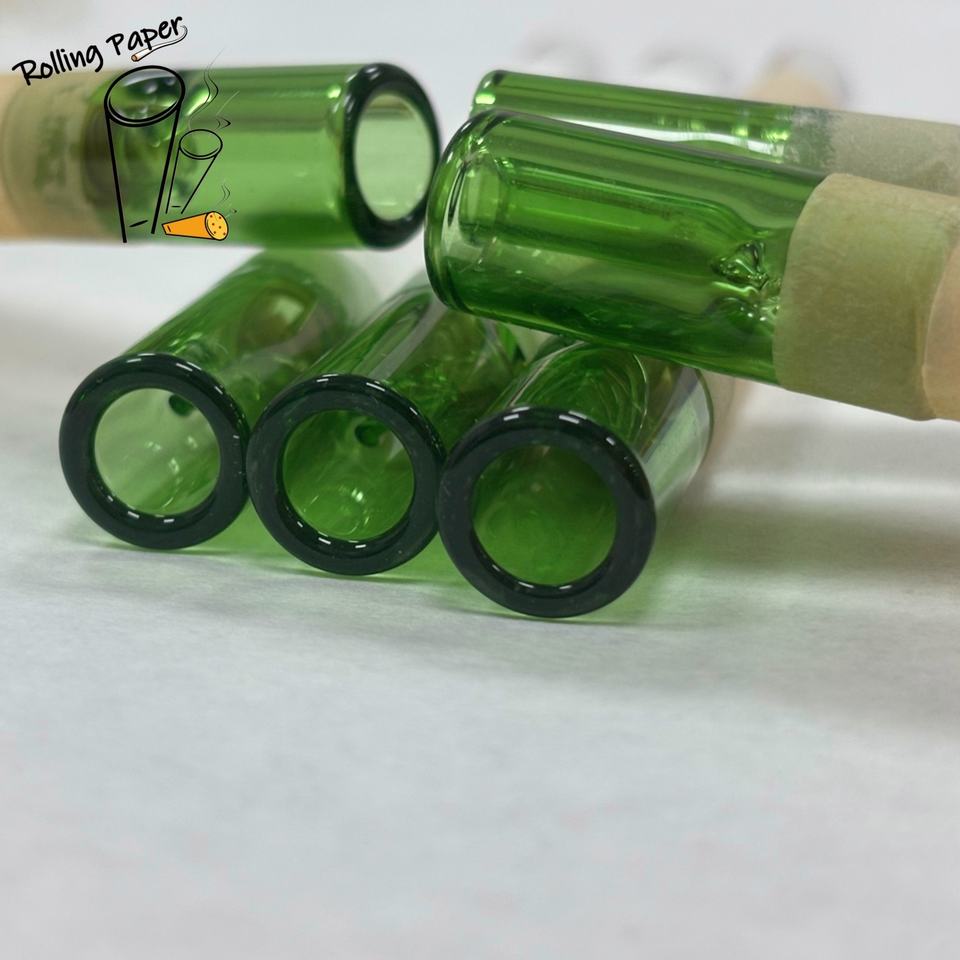 Tube à papier à fumer en verre vert personnalisé de 10 * 30 mm, fabriqué en papier de riz non blanchi/blanchi, avec une bonne sensation de fumée