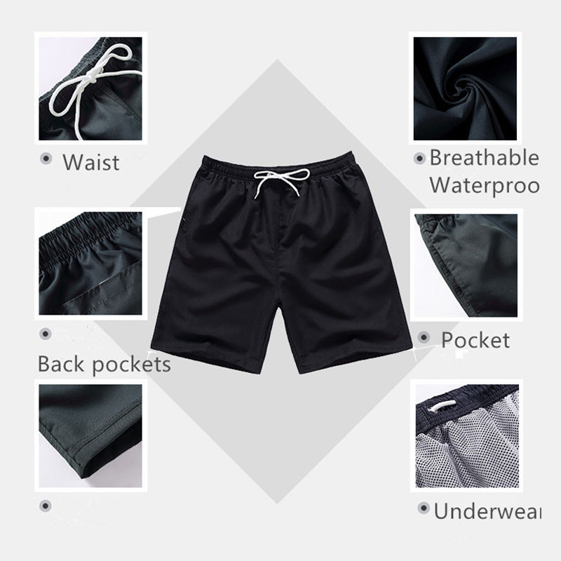 Shorts de natation et d'entraînement pour hommes en polyester 100% personnalisés pour l'été, respirants, pour l'extérieur, avec logo brodé personnalisé, shorts unis