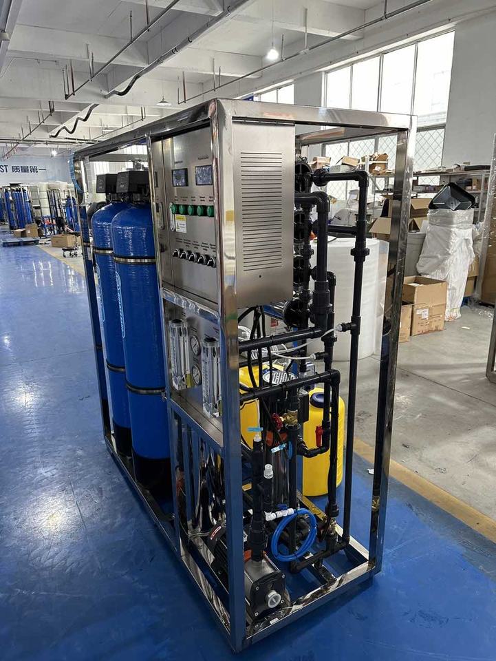 Système de traitement d'eau par osmose inverse commercial personnalisé de 1000 L avec pompe, boîte de vitesses, acier inoxydable 304, garantie 1 an