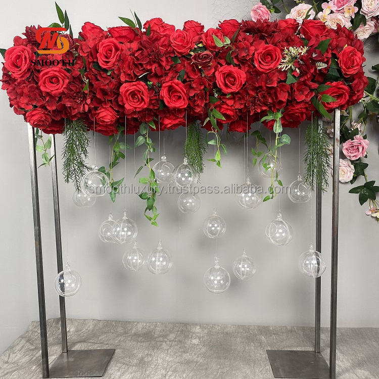 Personnalisé 100cm Or Rectangle Métal Fleur Stand Lisse Blanc Artificielle De Table De Mariage Fleur Moderne Simple Nouvelle Arrivée