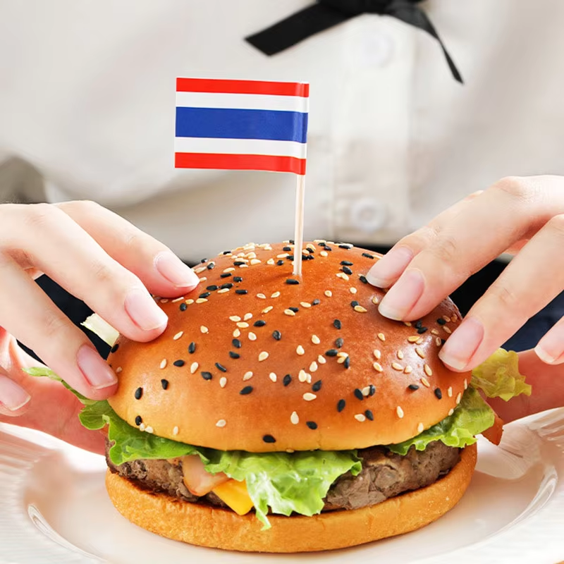 Personnalisé 100 pièces drapeau National nourriture Cocktail drapeau jetable BAMBOU imprimé en bois cure-dents drapeau fête Bar nourriture