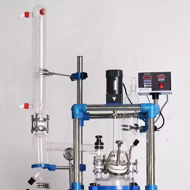 Réacteur en verre de châssis en acier inoxydable d'une capacité de 10L à 50L Réacteur à réservoir contrôlé par PLC Moteur à doublure à double couche personnalisé
