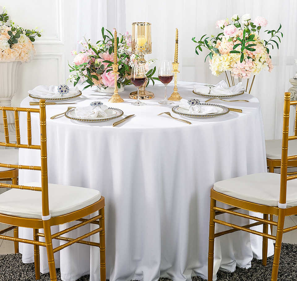 Nappes Rondes Personnalisées Blanches en Polyester de 120 pour Fêtes, Mariages, Événements et Restaurants