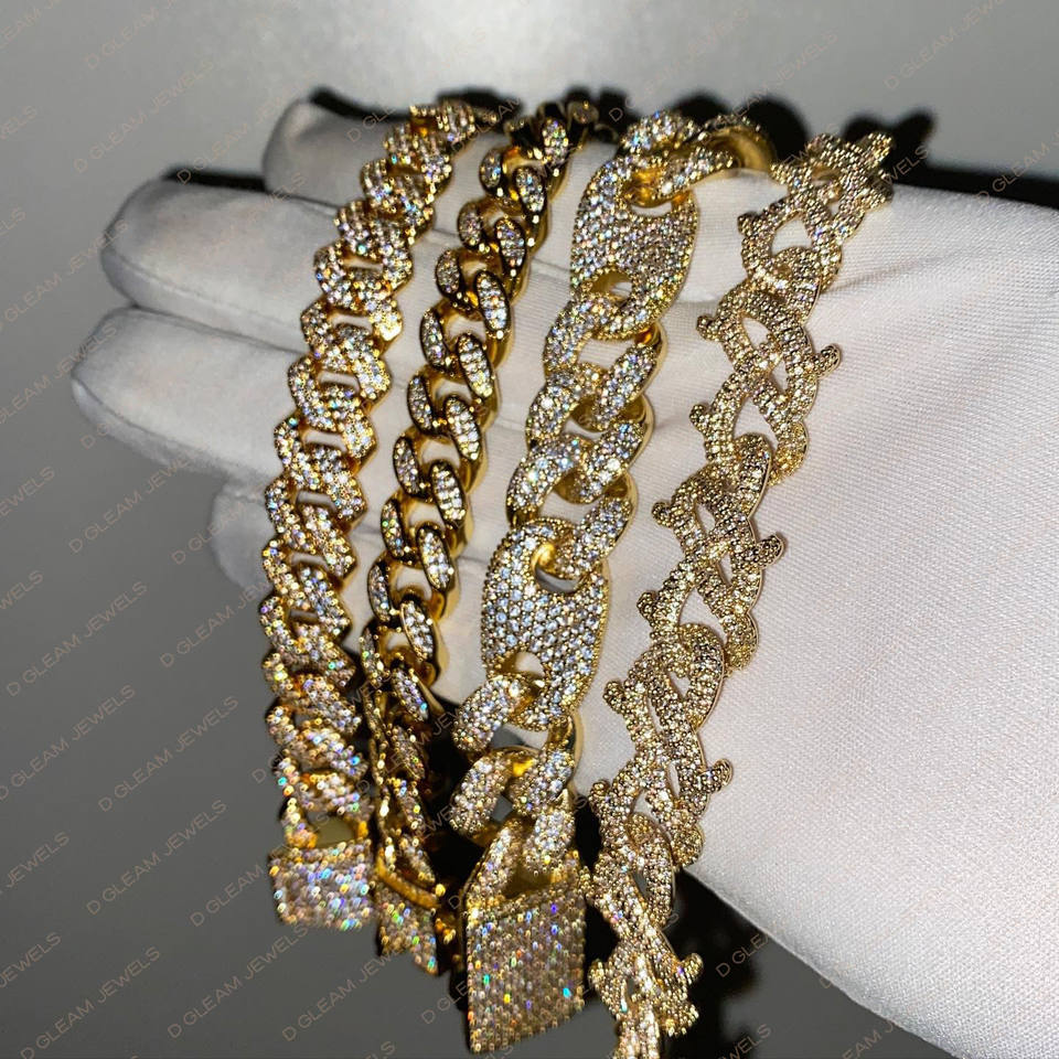 Chaîne cubaine Miami personnalisée de 14 mm d'épaisseur, diamant de laboratoire taille brillant VVS testé et approuvé, en argent 925, unisexe, pour fêtes et mariages