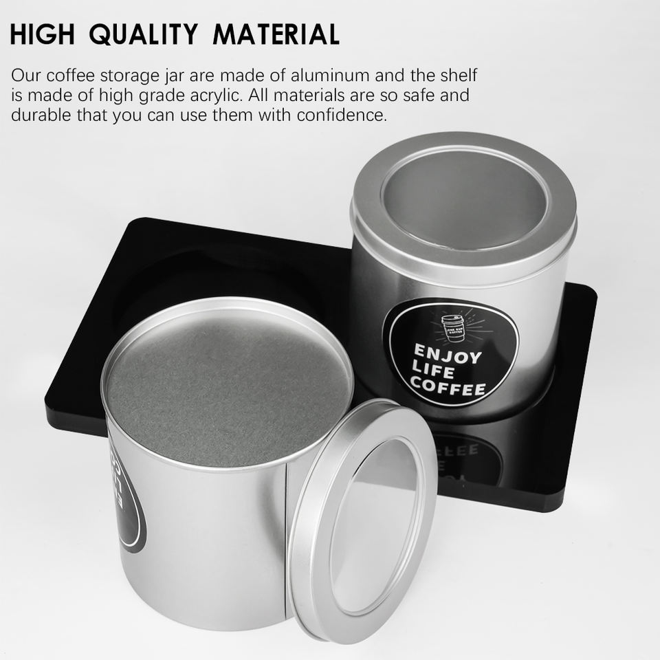 Package including:2PCS Coffee Canisters,1PCS Storage Shelf,1PCS Measuring Spoon