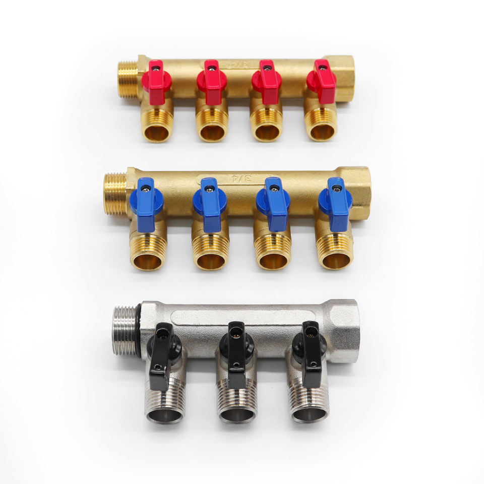 Raccord de collecteur en laiton personnalisé 2-6 voies plancher chauffant en cuivre Pex pour contrôle de l'eau manuel de la chaleur de l'eau