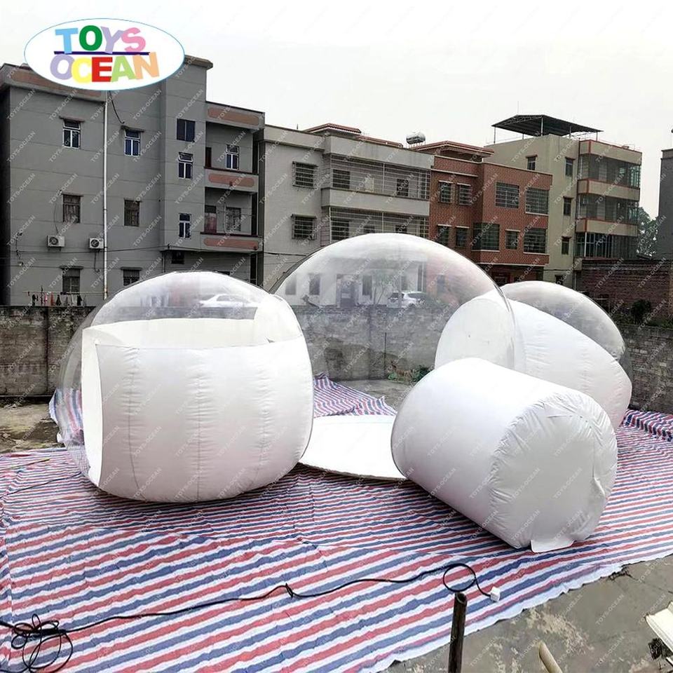 Tente bulle transparente gonflable en PVC personnalisée pour hôtel, 2 chambres, idéale pour le camping en plein air