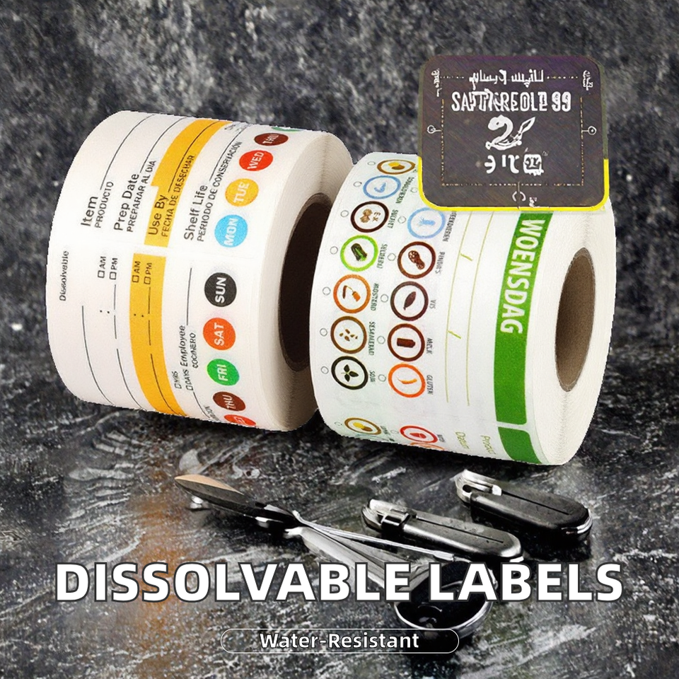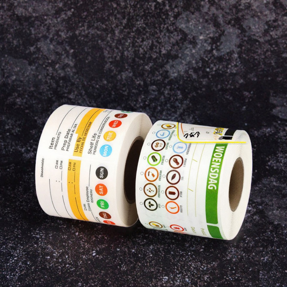 Rouleau d'autocollants adhésifs personnalisés de 2 x 3 pouces, étiquettes dissolubles pour la rotation des aliments dans la cuisine, 250 étiquettes avec durée de conservation