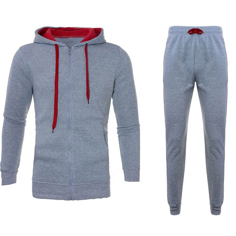 Ensemble de survêtement deux pièces personnalisé pour homme avec logo brodé, couleur gris, motif personnalisé, veste et pantalon, collection 2022, vente en gros
