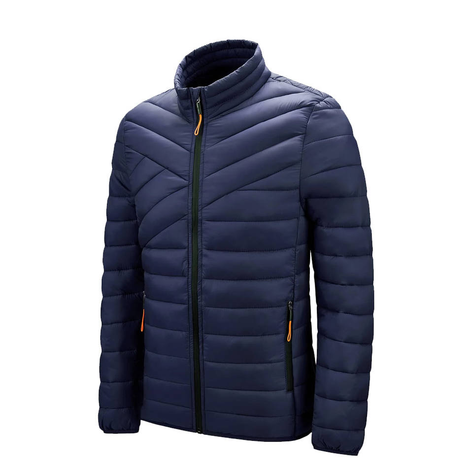 Blouson matelassé personnalisé 2024 pour homme, col montant zippé, hiver, écologique, style urbain, couleur unie, décontracté, épais et chaud en toile