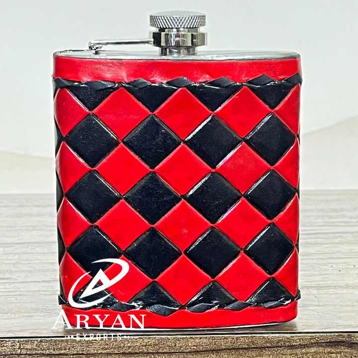 Flasque à alcool en cuir à carreaux travaillé à la main avec acier inoxydable
