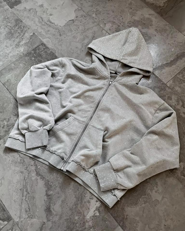 Sweat à capuche personnalisé avec fermeture éclair, style streetwear 2026, strass vintage, délavage acide, pour hommes