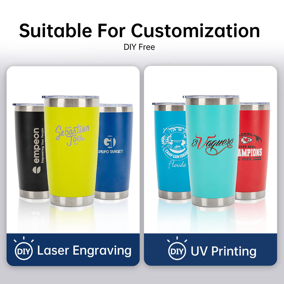 Gobelets isothermes en acier inoxydable avec revêtement en poudre personnalisé de 20 oz, tasses à café de voyage avec logo