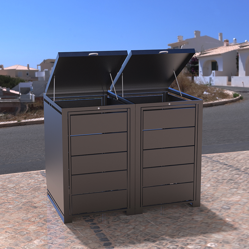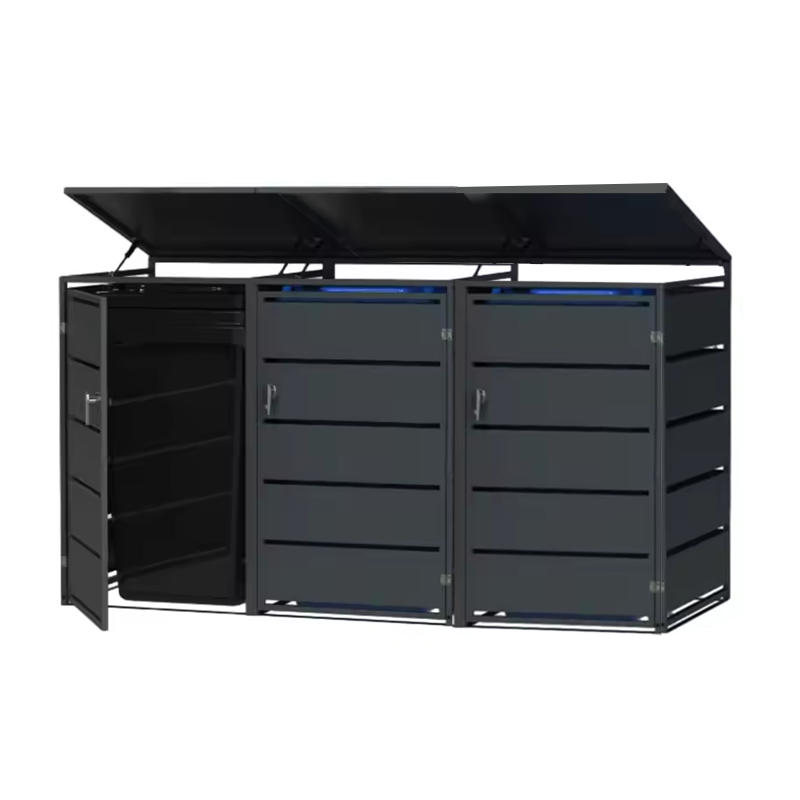 Seau de stockage de feuilles galvanisées 240L personnalisé poubelle extérieure avec tige hydraulique structure intégrée toit de la cabine