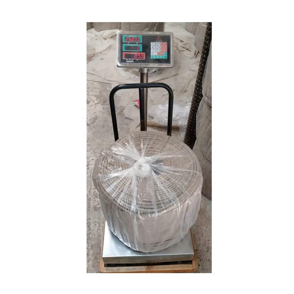 25 kg par bobine chaque bobine enveloppée avec poly puis 2 bobines chaque ferme enveloppée avec un sac en toile de jute