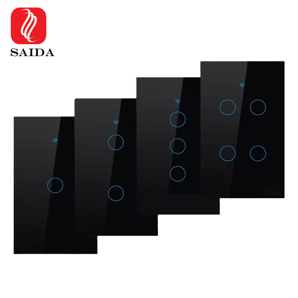 Verre trempé solide personnalisé de 2 mm pour salle de bain d'hôpital, cuisine, panneau de commande d'éclairage électrique intelligent à écran tactile/prise