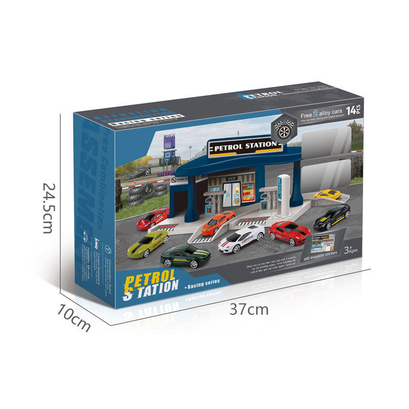 Description:Jouet Voiture De Stationnement Garage Avec 2pcs Alliage Métal Voiture