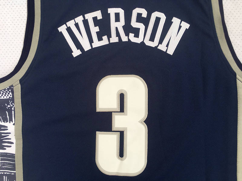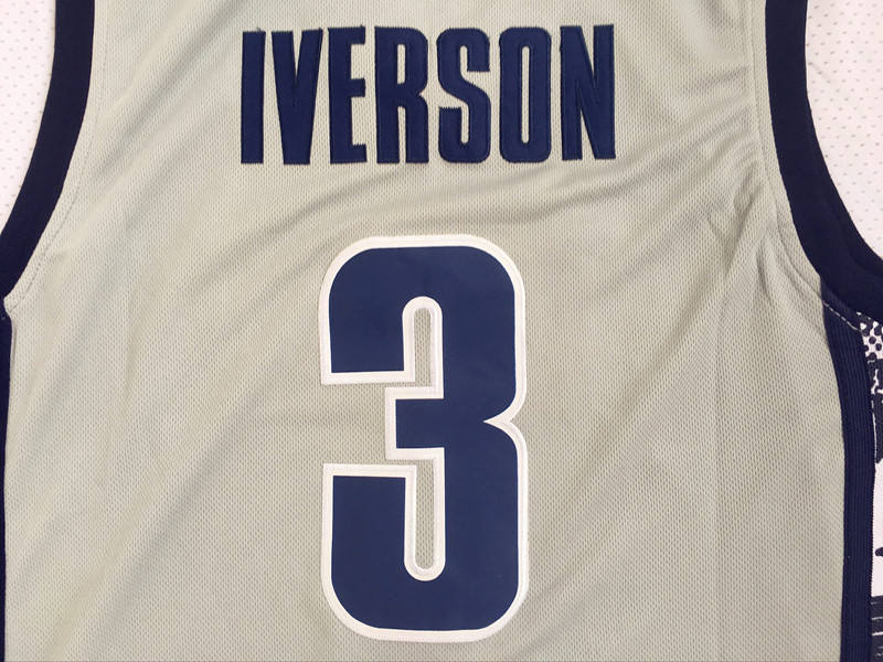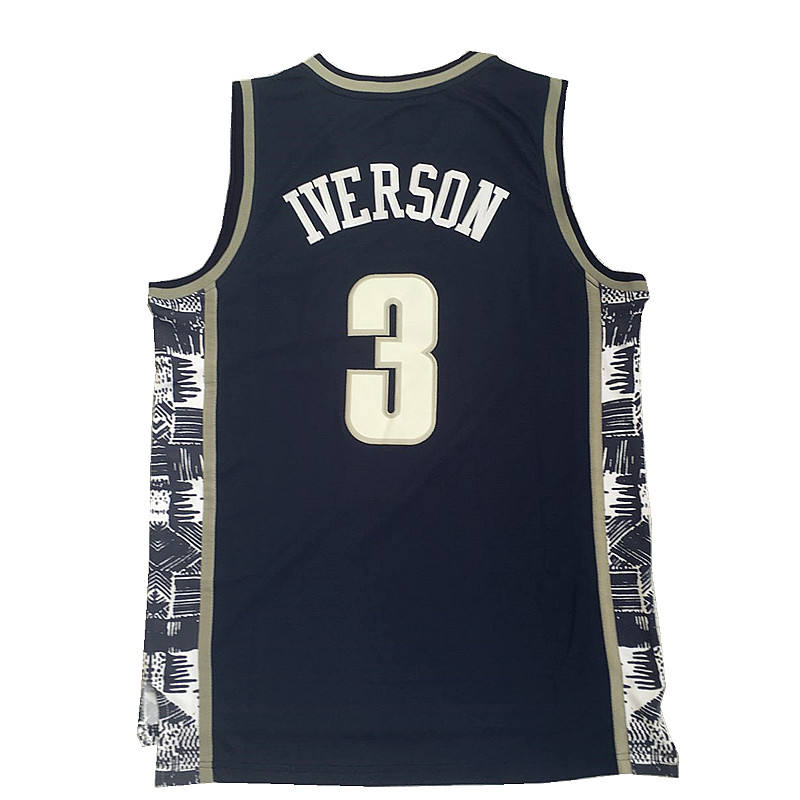 Chaque personnalisé #3 Iverson Allen US College Retro Basketball Uniforme Basketball Jersey Design Royal Blue emballé dans un poly sac, puis 50 pcs dans un carton.