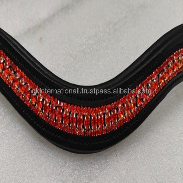 Personnalisé 3 rangées de cristaux orange cuir cheval bride bandeau à sourcils à vendre toutes tailles et formes disponibles