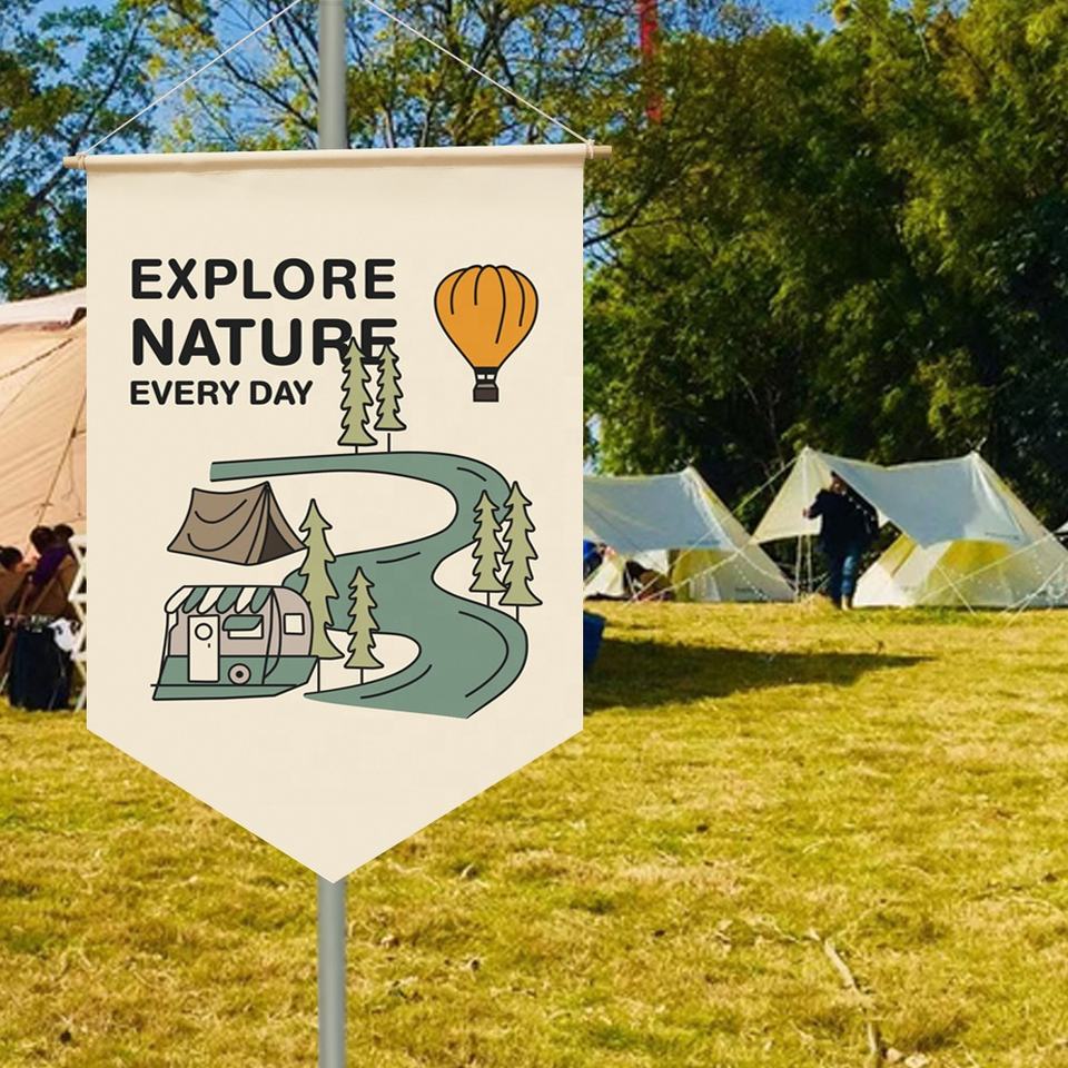 Nom du produit:Drapeau de bannière de mur de toile de sublimation avec le cintre et la ficelle en bois