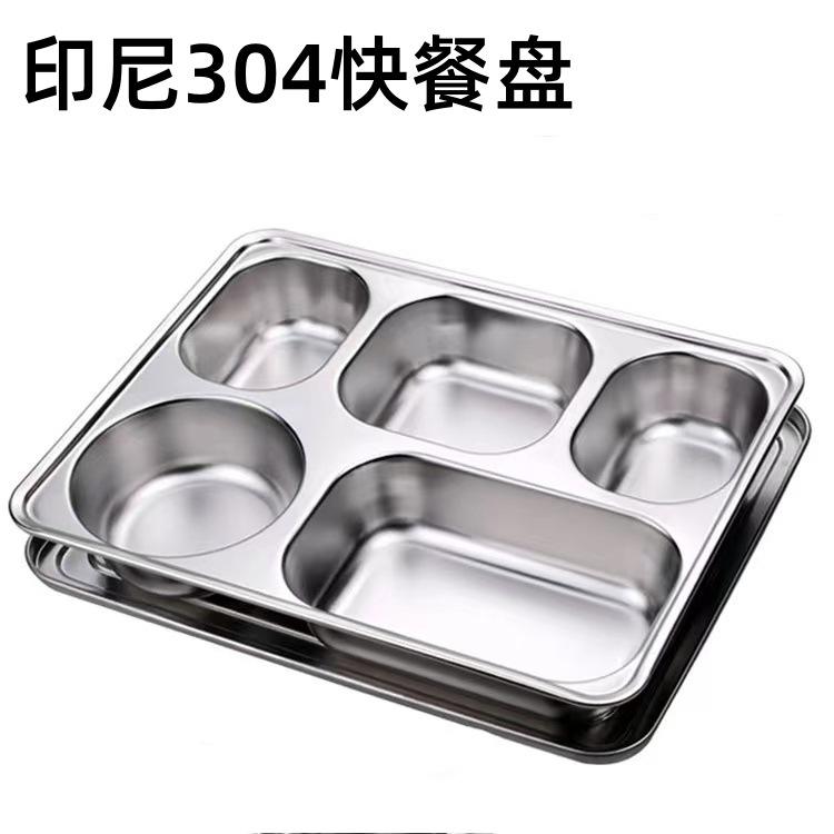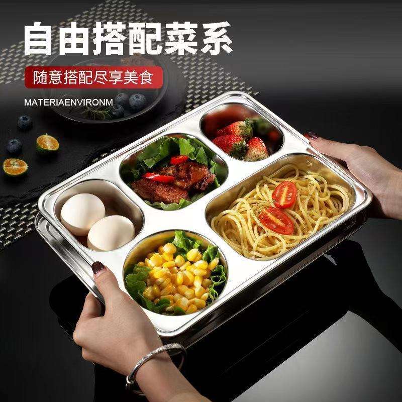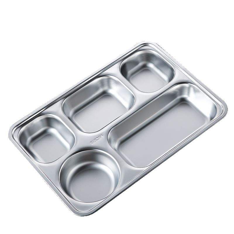 Plateau à cinq compartiments en acier inoxydable 304 personnalisé, grand format carré, pour utilisation en cafétéria